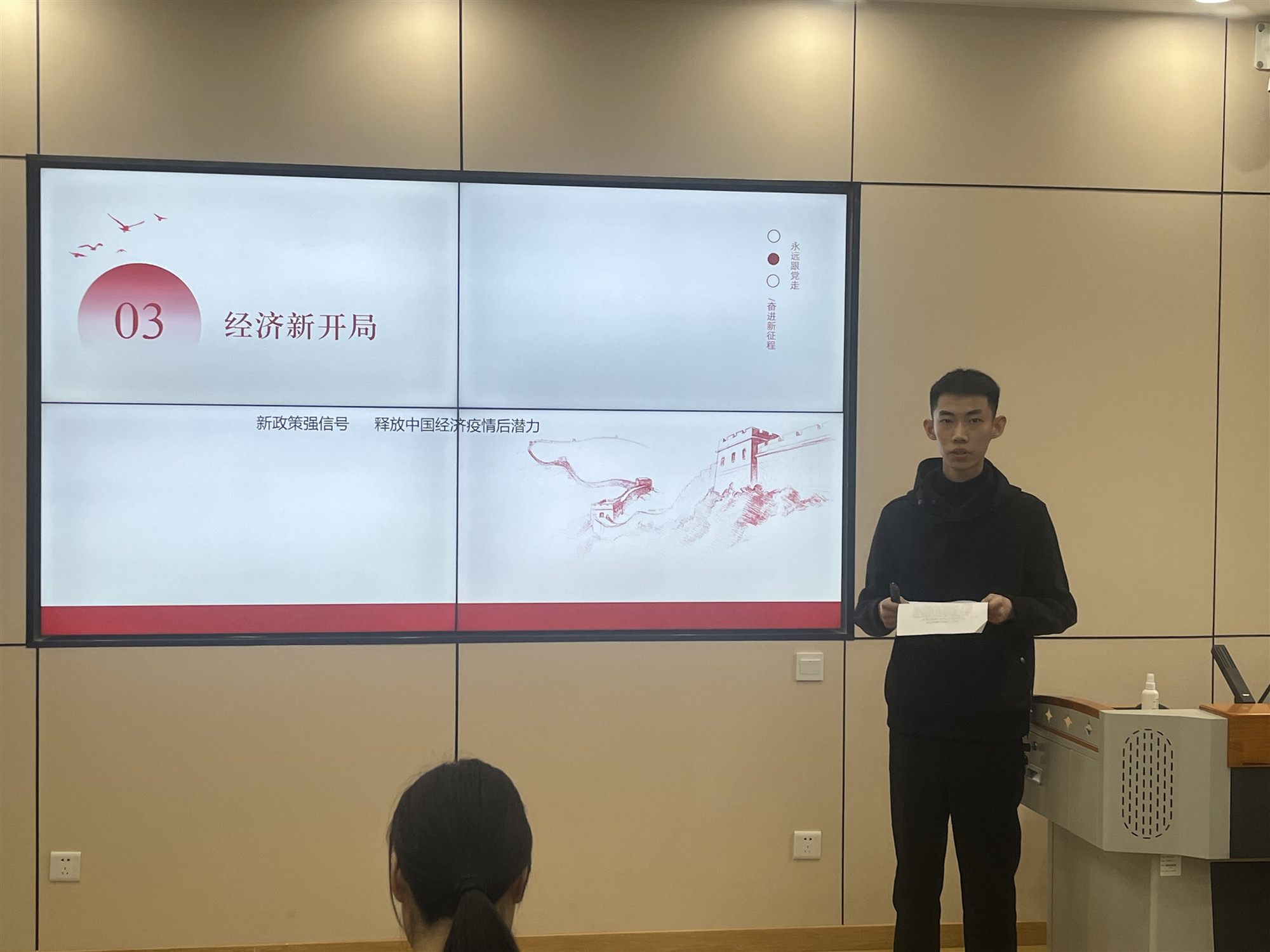 为更好发挥宣讲效果,本次宣讲充分征求学生意见,创新宣讲形式,采取内容点餐式送学,线下微课式宣讲,线上弹幕式互动的形式开展。宣讲团十名同学紧紧围绕党的两会专题精神,从“决胜新起点、民主新叙事、经济开新局、开放新举措、因应新变局”五个方面,对两会内涵进行了系统阐述与深入解读。整个宣讲会内容丰富、数据详实、案例生动、逻辑清晰、互动顺畅,同学们激情飞扬的讲解深化了与会师生对两会精神的认识和理解,也让学习、贯彻两会精神在学院师生政治生活中“更近”、“更实”、“更燃”。