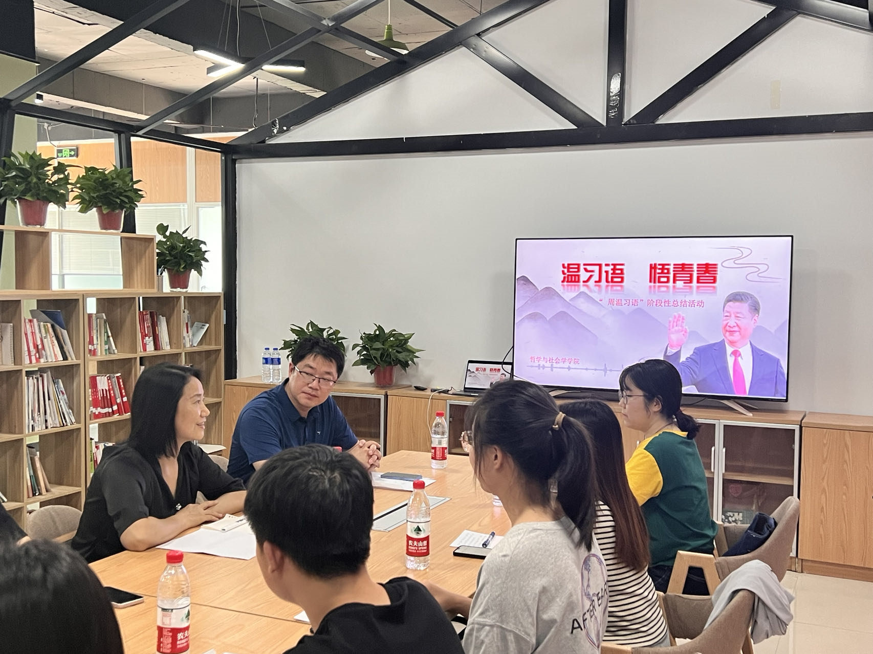 为深入学习贯彻党的二十大精神,5月18日下午,河北大学哲学与社会学学院团委在河北大学“一站式”学生社区服务中心,举办“温习语 悟青春”活动。学院党委书记张露红、团委书记王昭、学生社区党员代表参加了本次活动。