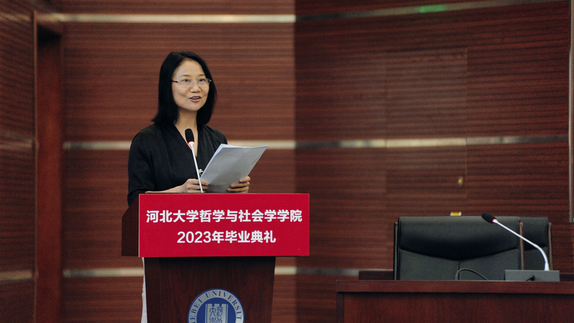 6月13日上午,哲学与社会学学院2023年毕业典礼在新校区图书馆一楼报告厅举办。学院班子成员、优秀校友、教师代表、23届毕业生出席典礼。毕业典礼由赵贤副院长主持。