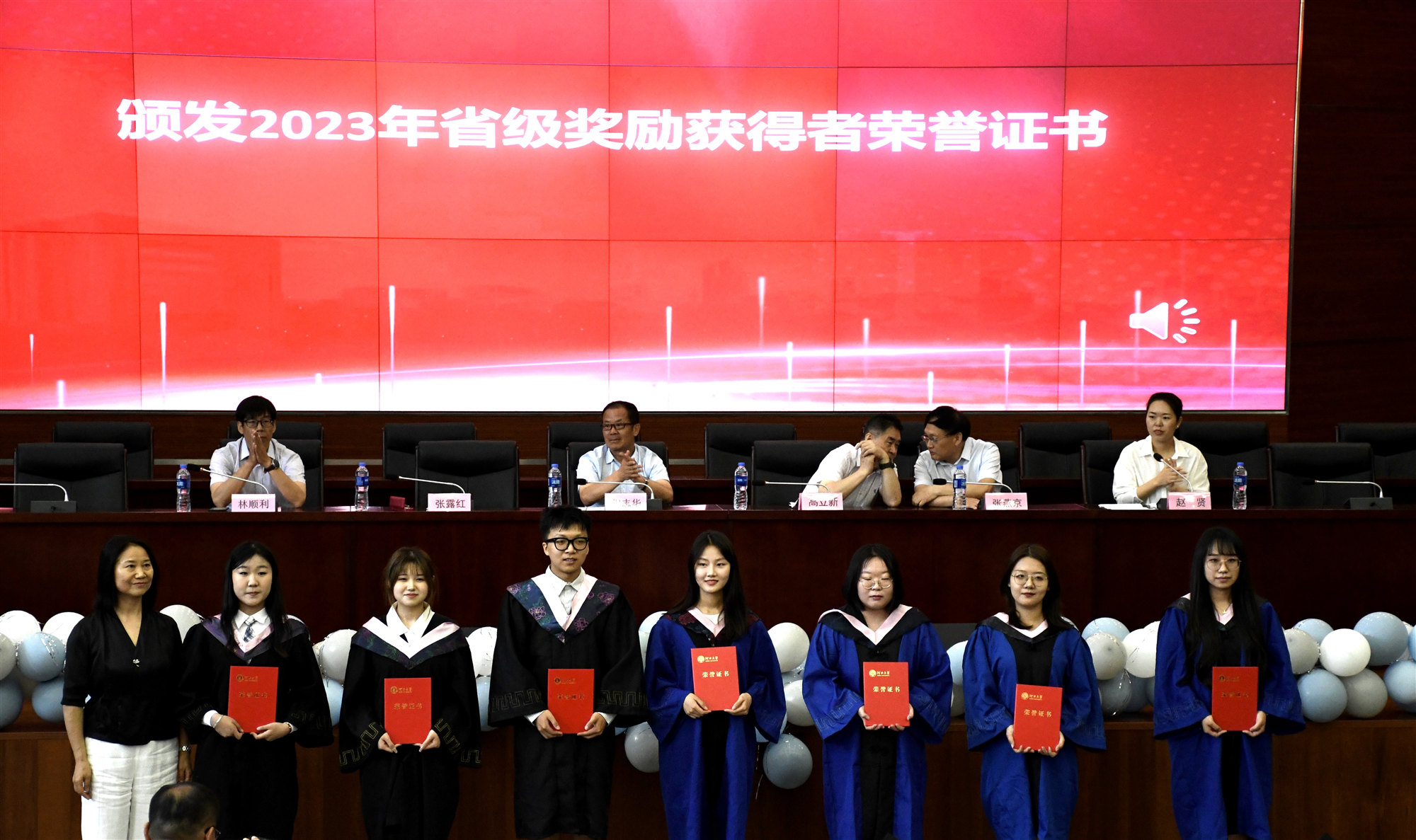 高立新、程志华、张燕京共同为“学思奖学金”获奖同学颁奖。