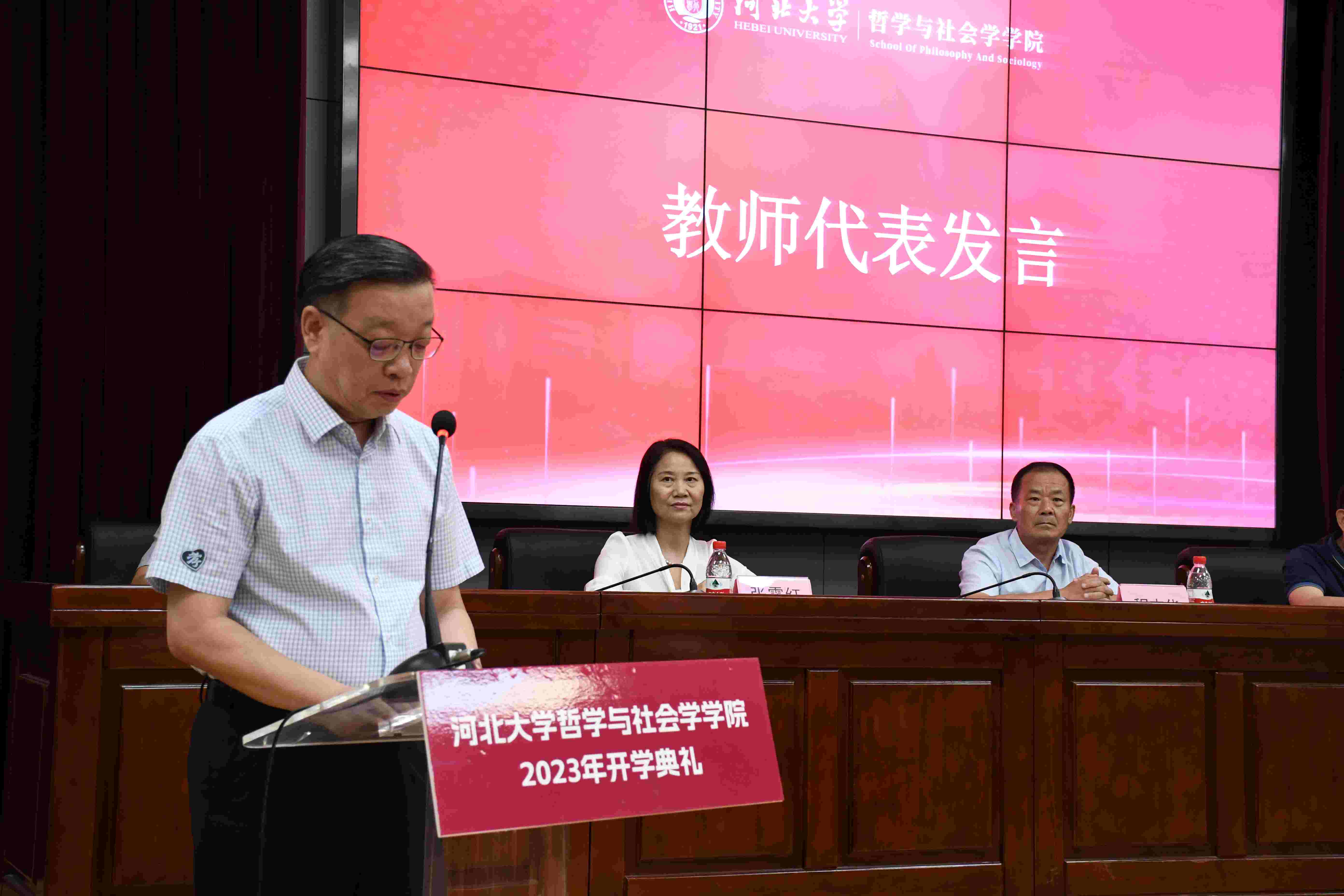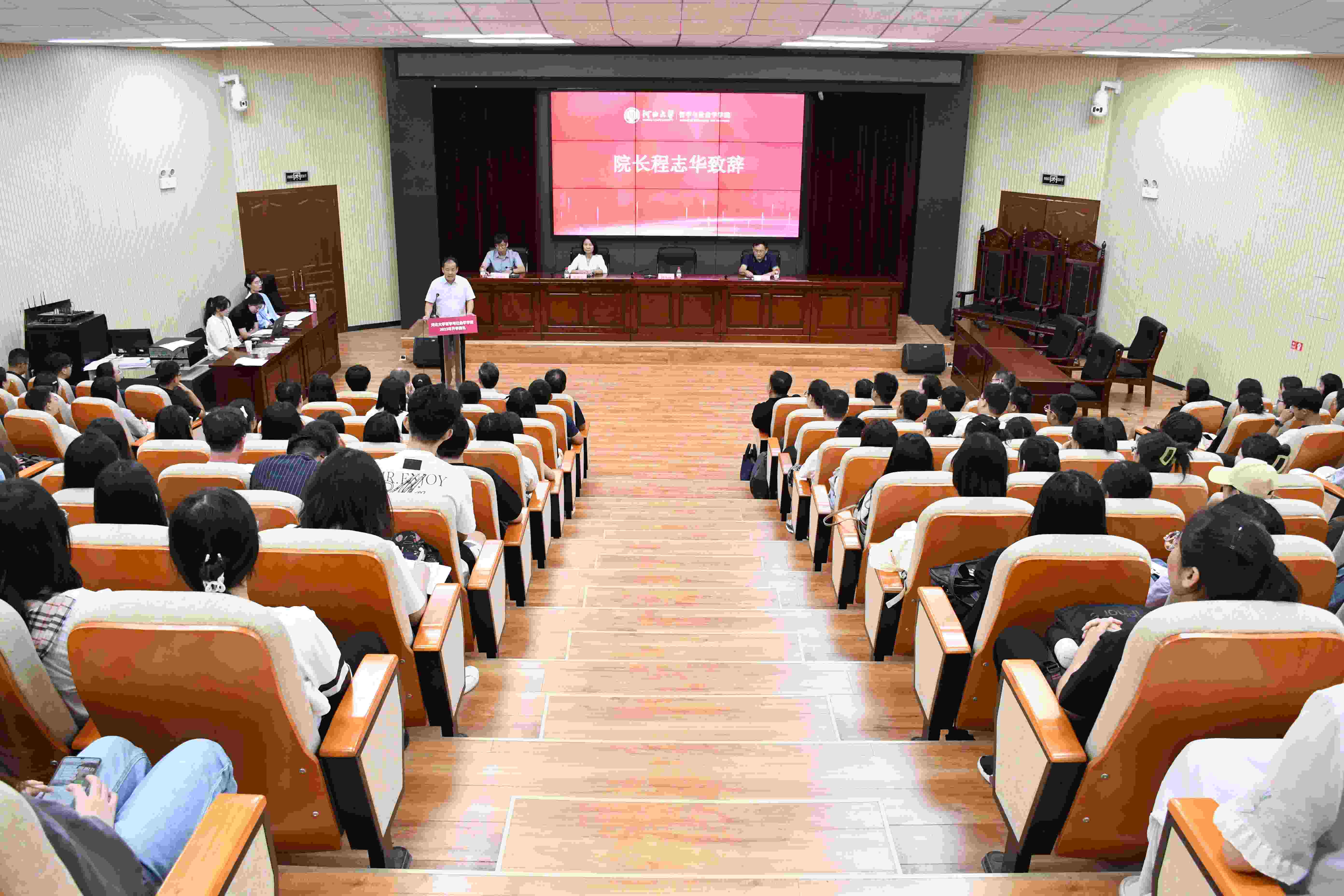 哲学与社会学学院院长程志华作了题为《放飞青春梦想》的精彩讲话,他详细生动地介绍了学院的历史沿革,雄厚的师资力量,蓬勃的学科发展,指出学院目前是河北省哲学和社会学学科人才聚集的高地,是两个学科人才培养的基地和科学研究的重镇。程院长希望同学们在追求学业和事业的道路上,要追求卓越,避免平庸,树立坚卓之志,勇于担当作为;要追求成功,避免愚蠢,勤学善思,不迁怒、不贰过;要追求高尚,远离卑鄙,做有理想、有原则、有敬畏、有坚守的真君子。最后,程院长勉励同学们通过在大学的学习,努力成为一个有志向、有学识、有才干、有担当的优秀人才,为实现中华民族伟大复兴贡献力量!