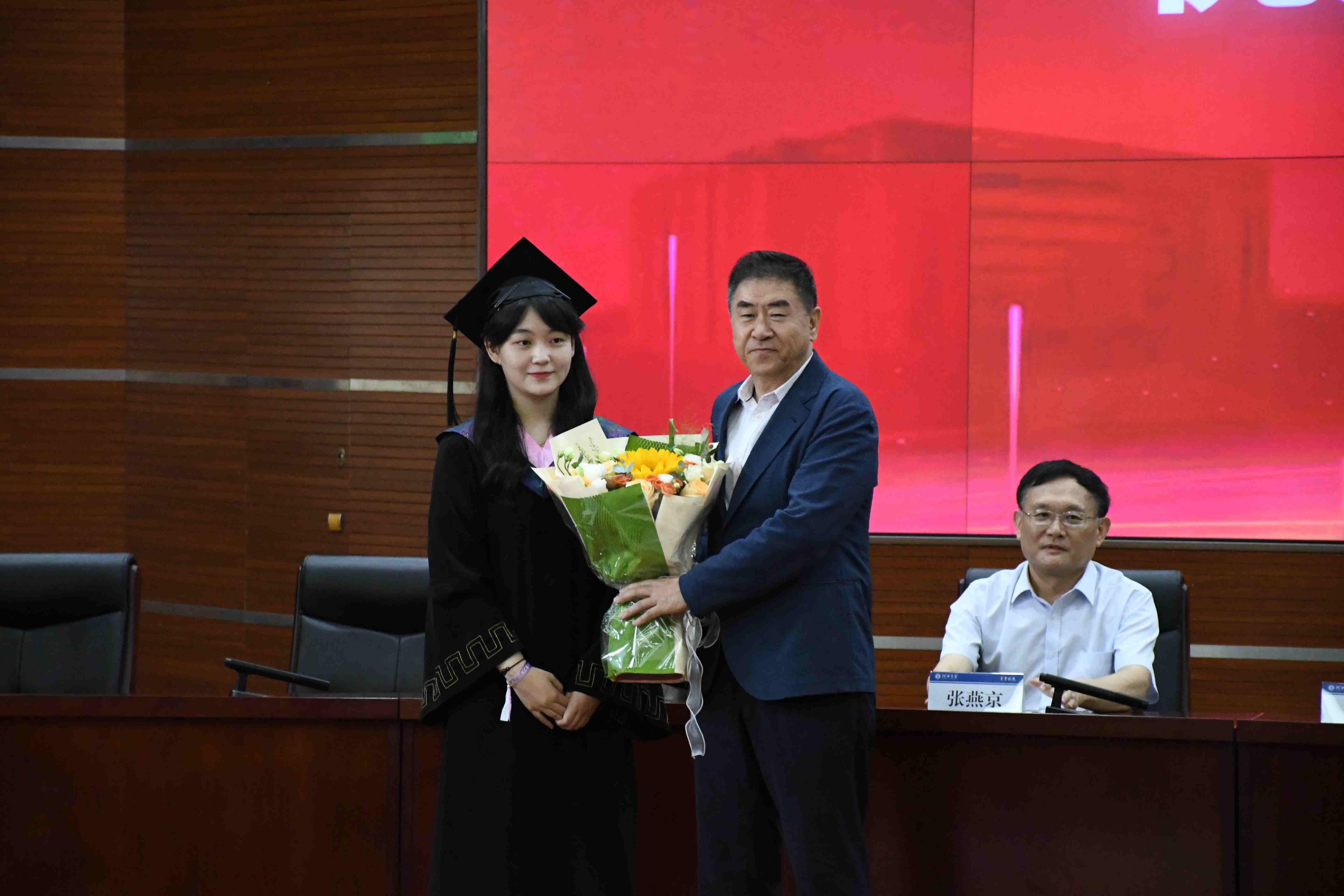 学院院长张燕京作了题为《毕业了,意谓着什么》的精彩演讲,他以学者及长者的风格循循善诱、娓娓道来。毕业,于己意谓着完成了学业,具备了立身之本;于家意谓着长辈完成了养育任务,期许你开启新的人生的历程;于校意味着培养了优秀人才,阶段性完成了育人使命;于国意味着,又一批有志青年投入到新征程的建设洪流中。张院长希望同学们肩负家国情怀,心怀国家,成就事业;心怀理想,成就梦想;心怀责任,服务社会;心怀感恩,勿忘母校。既要热爱智慧,追求智慧;又要崇尚至善,践行至善。求智慧之学,行至善之事,转识成智,以达至善,成就人生,不负时代!