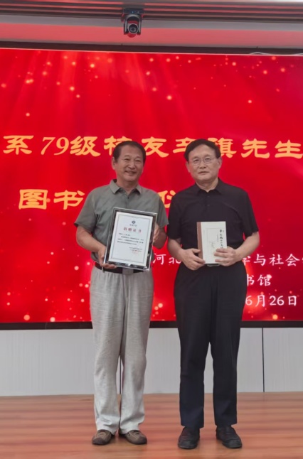 2025年6月26日,哲学系79级杰出校友辛旗先生图书捐赠仪式在哲学与社会学学院学术报告厅举行。本次捐赠的图书《辛勤格物知是非——清史探微集》是其女儿故宫博物院研究馆员辛格非多年研究的重要学术成果,该图书研究价值较高,不仅丰富了我院的图书资源,更为我院师生开展科研工作提供了宝贵参考。