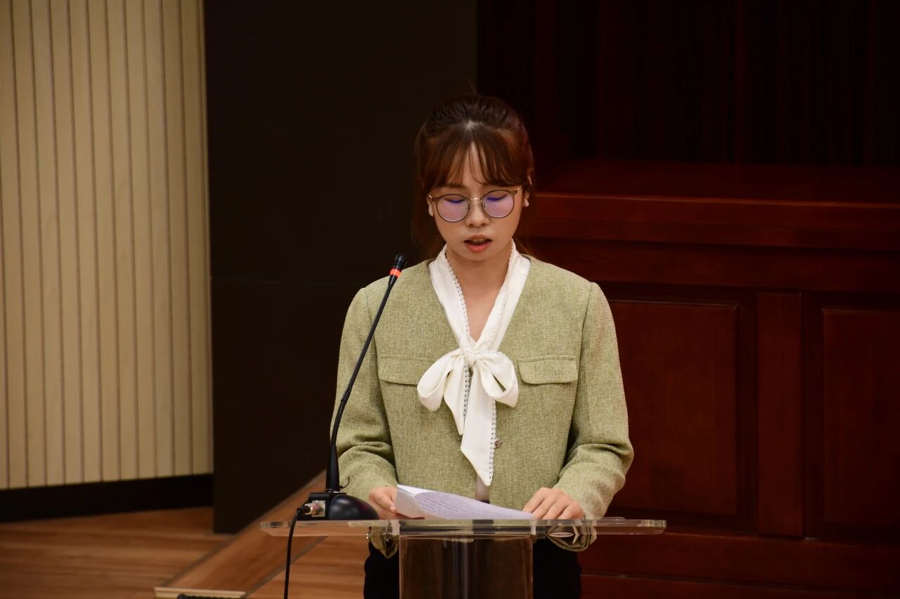 在校生代表,2023 级哲学专业博士生毛心悦与新生共勉,要不忘初心、砥砺奋进,厚植家国情怀、涵养进取品格,以奋斗姿态激扬青春,不负时代,不负华年。