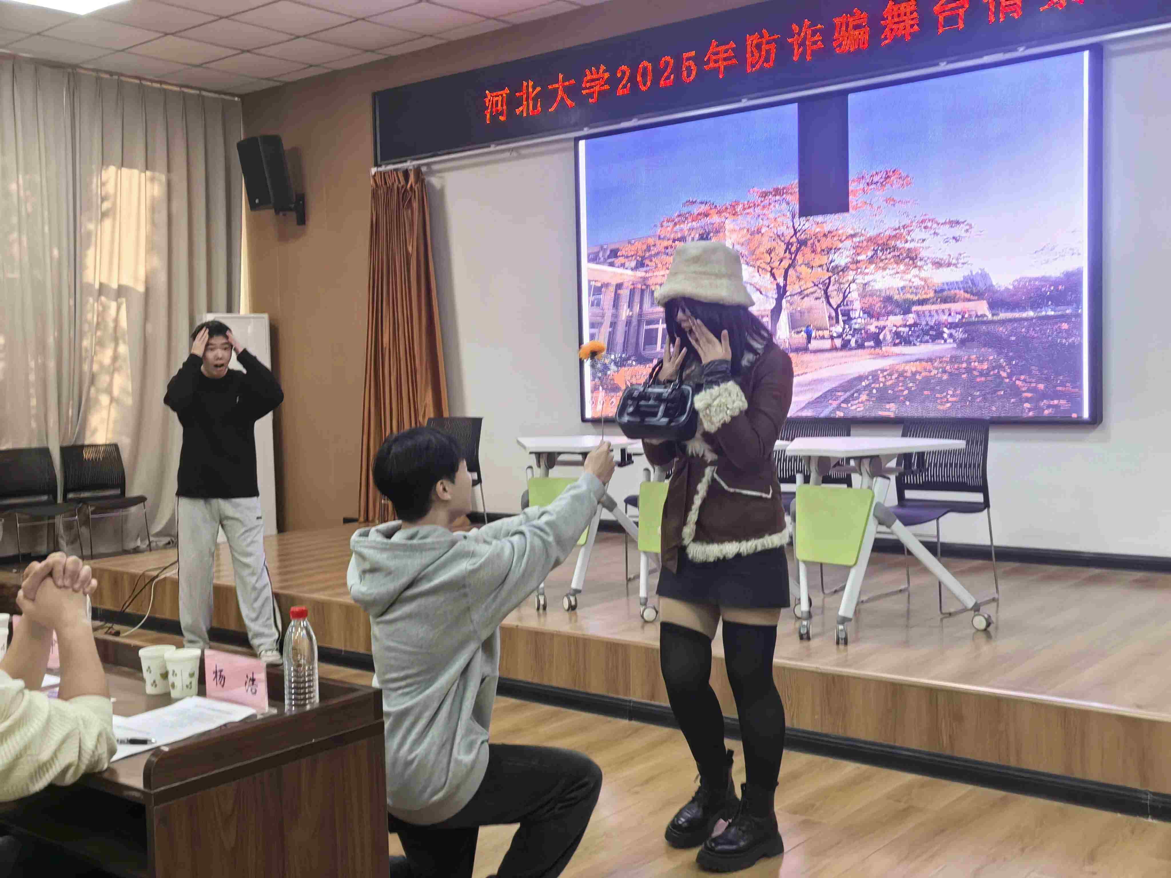 为进一步强化安全防范意识,提升反诈应对能力,厚植校园安全文化,12月4日下午,河北大学2025年防诈骗舞台情景剧大赛在五四路校区成功举办。哲学与社会学学院代表队凭借其原创作品《罪恶迷途》,以贴近现实的剧情与生动深刻的演绎,荣获大赛二等奖。