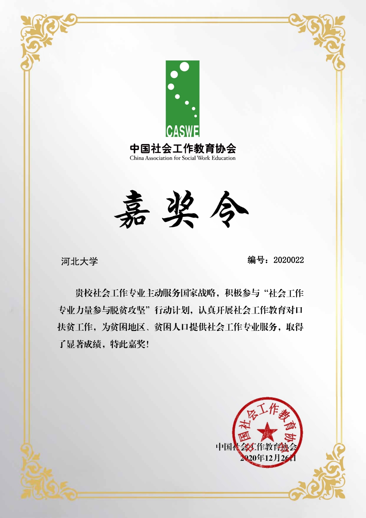 近日,哲学与社会学学院社会工作专业喜获中国社会工作教育协会颁发的嘉奖令,表彰我校社会工作专业主动服务国家战略,积极参与“社会工作专业力量参与脱贫攻坚”行动计划,认真开展社会工作教育对口扶贫工作,为贫困地区、贫困人口提供社会工作专业服务,取得了显著成绩。