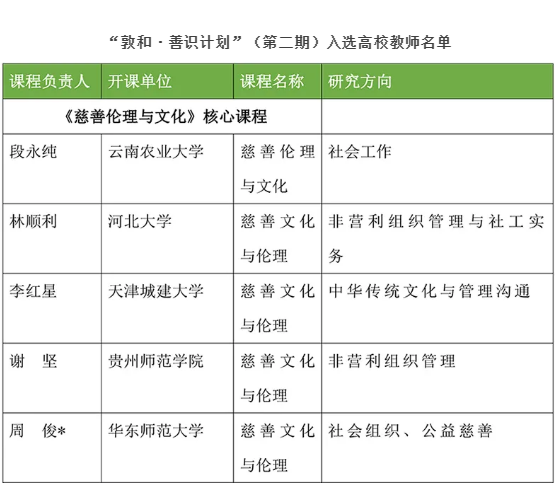 日前,经过项目征集和评审工作,由敦和基金会与公益慈善学园联合发起的高校慈善通识课程支持“敦和·善识计划”(第二期)资助名单出炉,共有来自全国各地高校的23位高校教师获得项目资助,我院以林顺利教授为首的社会工作新文科创新教学团队获得“敦和·善识计划”二期资助。