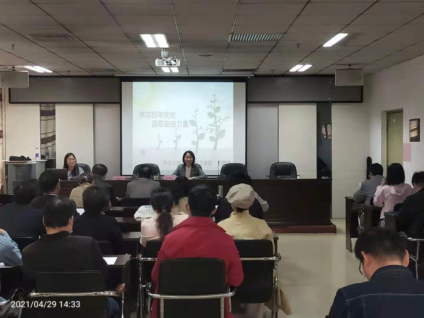 4月29日下午,哲学与社会学学院在B1六楼学术报告厅举行“党史知识讲座”。讲座邀请河北大学党史学习教育讲师团成员、马克思主义学院副教授任娟玲作了题为“学习百年党史 汲取奋进力量”的专题宣讲,学院师生党员代表参加了学习。