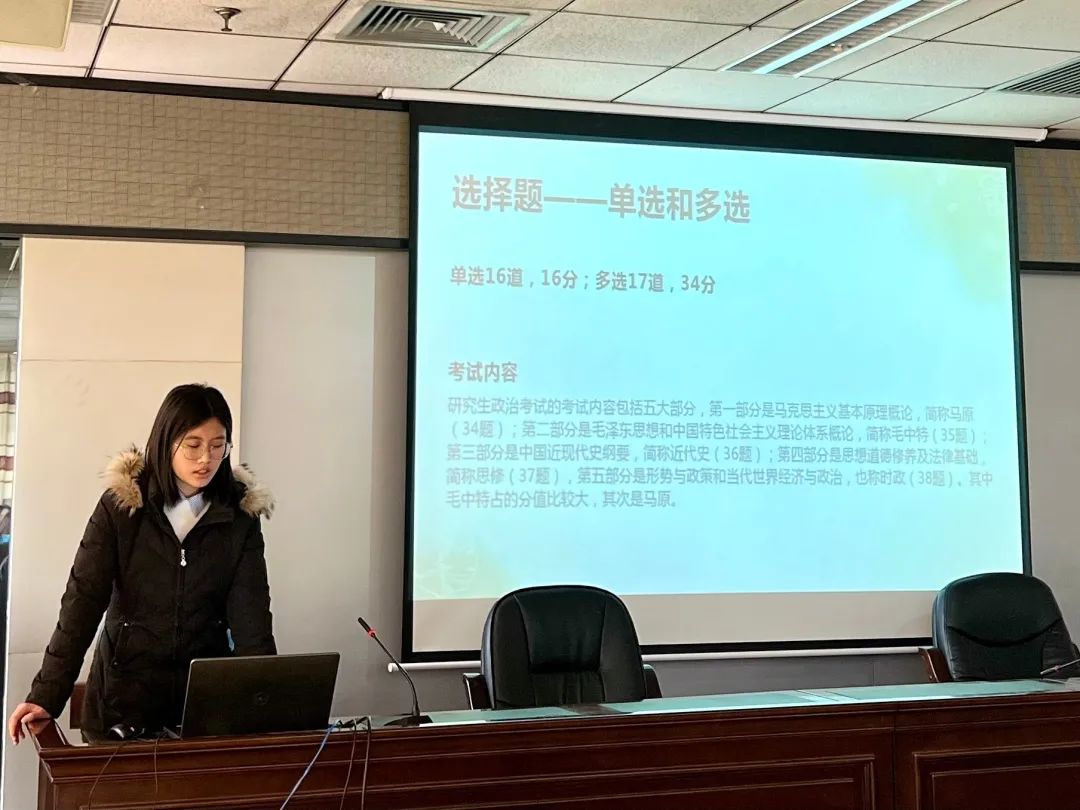 团委书记王昭分析了两年来学院各专业毕业生考研基本情况,鼓励同学们稳扎稳打,确定方向,总结方法,明确计划,通过努力奋斗成就自己的考研梦想。
