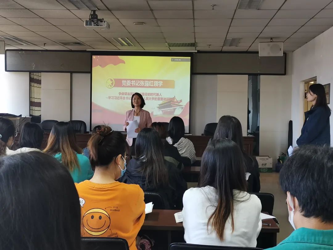 学院党委书记张露红,首先在中国共青团成立100周年,五四青年节即将到来之际,向全院青年学子致以节日祝贺以及诚挚问候。张书记强调,习近平总书记考察中国人民大学并同师生代表亲切座谈,对当代青年提出殷切期望和明确要求。全院师生要切实提高思想认识、强化学习自觉,认真领会习近平总书记重要讲话的丰富内涵和实践要求,不断增强为党做好青年工作的责任感使命感。张书记号召同学们坚定理想信念,扎根基层成长,始终心系人民,自觉苦干实干,更自觉更坚决地紧跟党,真正践行“青春向党、不负人民”、“复兴栋梁、强国先锋”的时代号召。