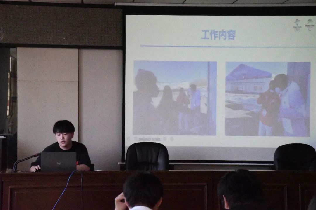 刘洋同学作为冬奥会交通领域志愿者,从工作环境、工作内容、工作感受这三个方面进行了分享。在室外寒冷的环境下,志愿者克服困难,不畏严寒,以高度的使命感投入到工作中。刘洋准确、热情地为运动员讲解场馆换乘信息,让国际友人感受到志愿者工作的严谨和热情。刘洋说尽管志愿者的工作非常辛苦,但能切身参与到赛会当中,感受相互了解、友谊、团结和公平竞争的奥林匹克精神,是他永生难忘的经历。