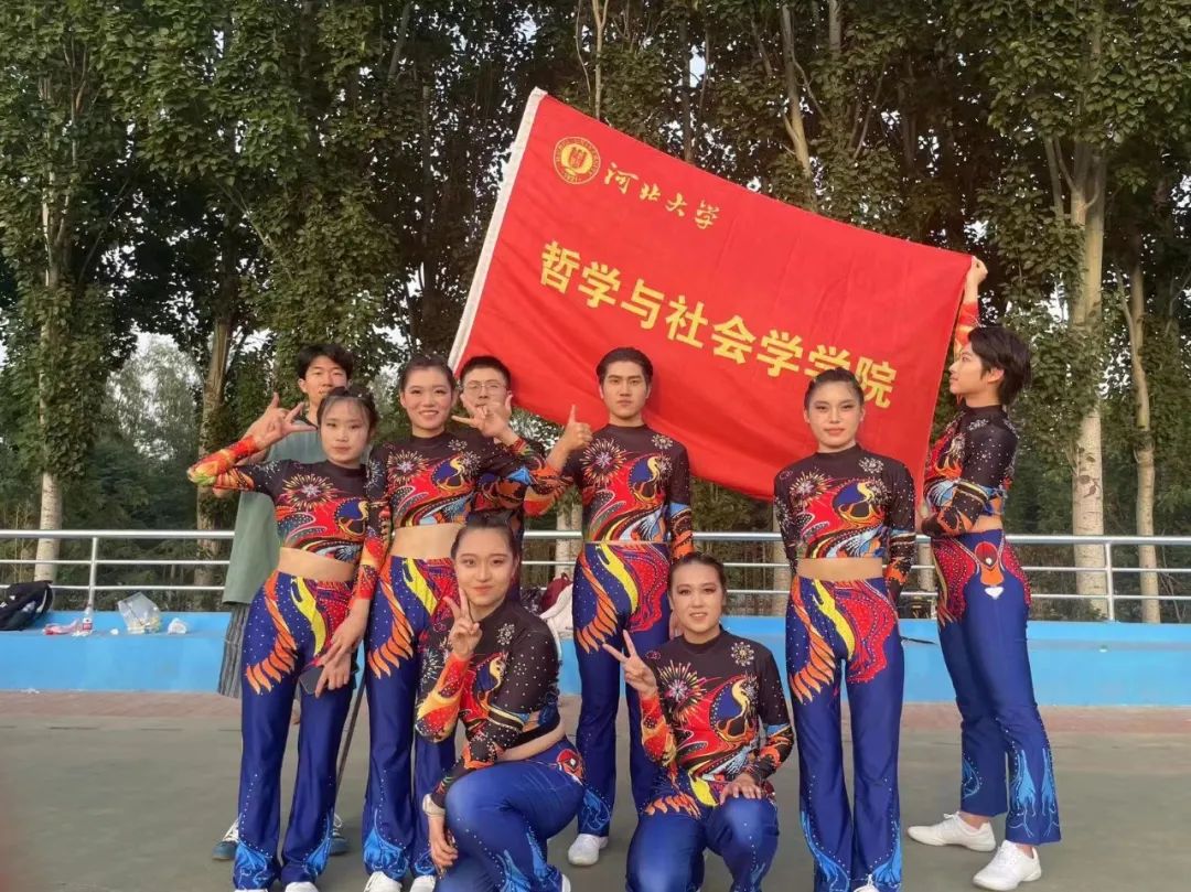 柔美与力量的较量,艺术与健美的邂逅。迎面向我们走来的是哲学与社会学学院健美操方队。优雅动感的动作,整齐划一的表演。充分显示了他们团结一致,齐心协力的团队精神。挥洒过汗水,无论输赢与否,便是身披荣耀;努力后归来,无论成败与否,便是不负所望。他们相信:只要付出,就会有回报,只要拼搏,就会有胜利的微笑。