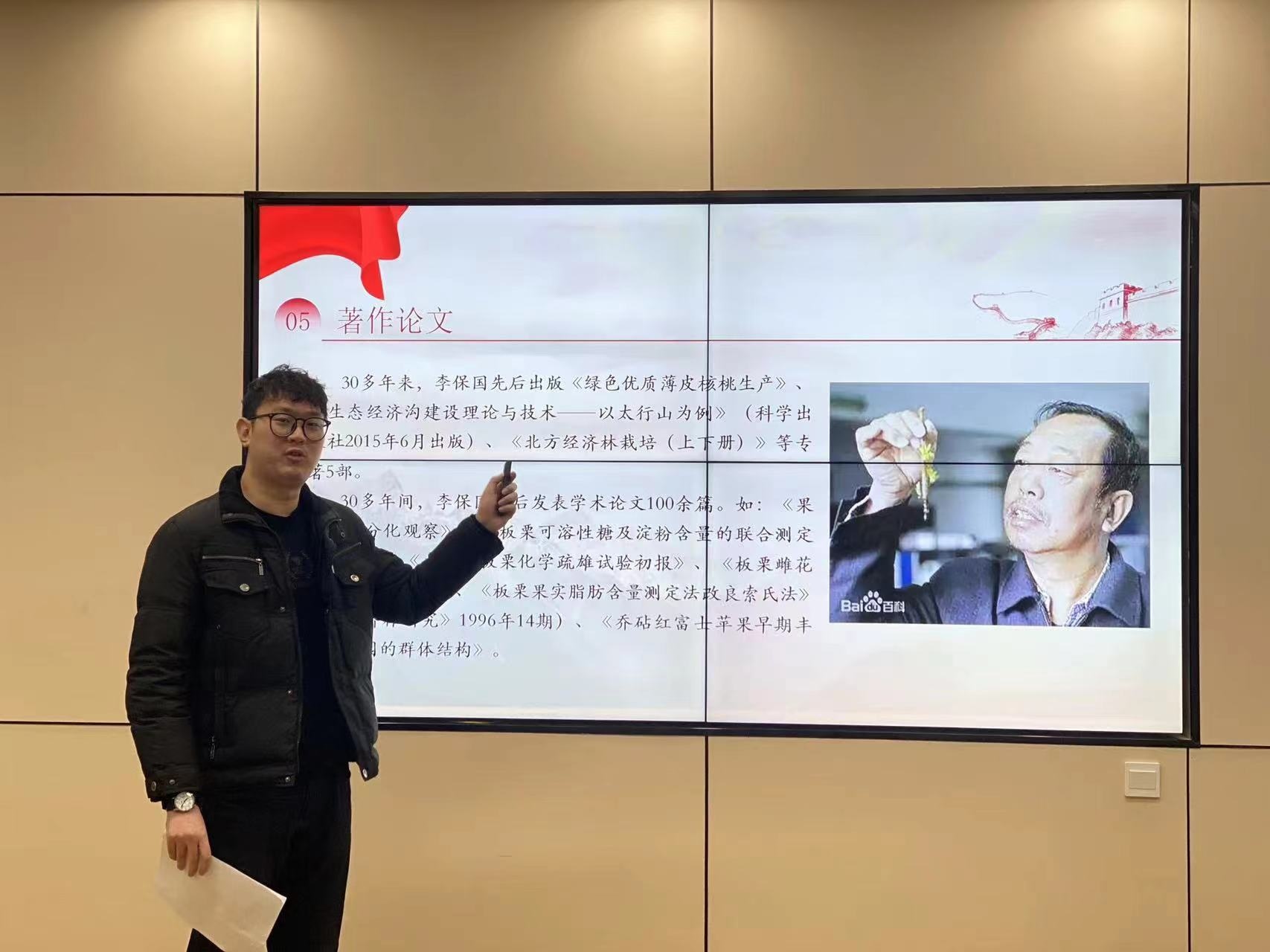 杨楠与王渡云同学介绍了”习近平总书记对河北农业大学教授李保国同志先进事迹的重要批示”精神。两位同学讲述了李保国同志的英模事迹,通过对李保国科研成果、执政措施、著作论文、教学成果的具体介绍,形象具体的阐述了李保国作为共产党人忠诚、干净、担当、实干的政治品格与“安、专、迷”的工作作风,号召同学们学习李保国心系群众、扎实苦干、奋发作为、无私奉献的高尚精神。