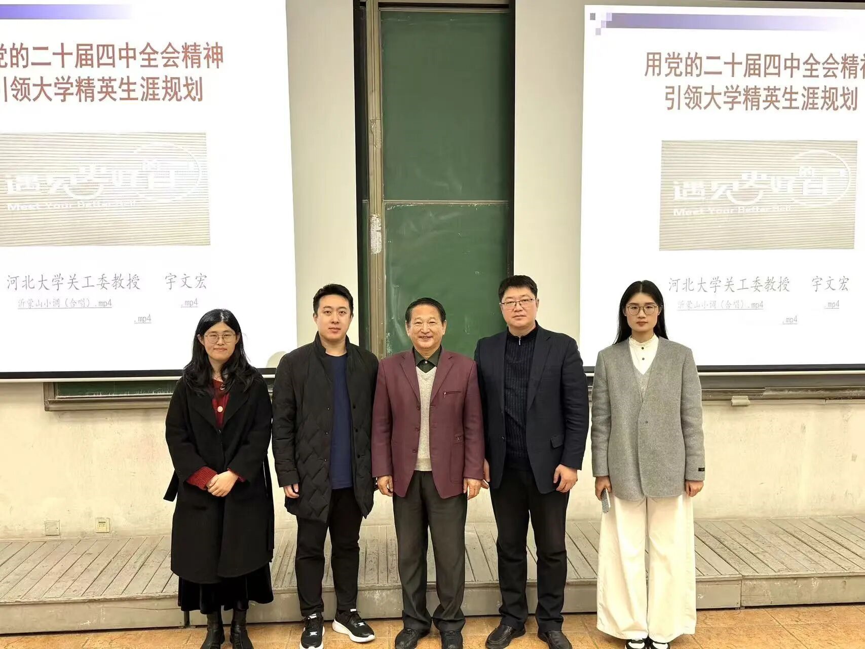 宇文宏教授曾担任河北大学党委委员、学院党委书记等职务,并在两个学院均有工作经历,对母校和母院怀有深厚感情。报告中,宇文教授凭借其深厚的理论素养和生动的语言表达,系统阐释了党的二十届四中全会精神的精髓要义,并紧密结合学生的专业背景,就如何将国家发展战略融入个人学业与生涯规划,进行了深入浅出、细致入微的指导。他殷切寄语全体新生:一要具备长远眼光,与时俱进,敏锐洞察时代发展大势;二要涵养高尚品德,坚守底线,筑牢人生价值根基;三要积累广博学识,知行合一,不断提升能力素质;四要厚植家国情怀,懂得感恩,勇于担当时代责任。他鼓励同学们努力成长为立大志、明大德、成大才、担大任的优秀大学生。