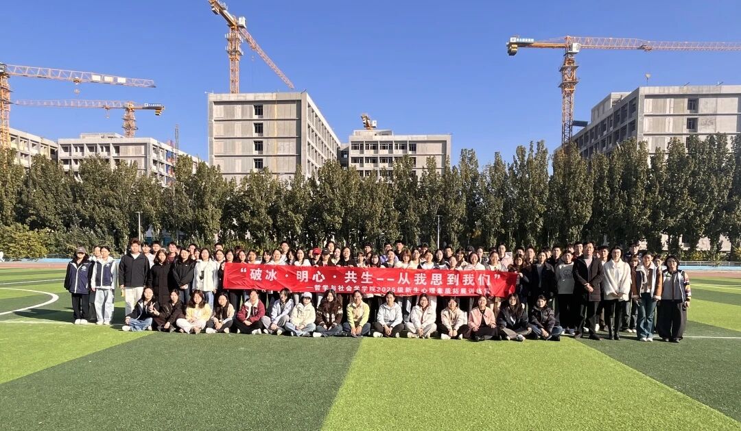 秋阳送暖,桂香满园。为促进新生交流融合,培育团队精神与健康心态,11月14日,河北大学哲学与社会学学院在新校区体育场成功举办了以“破冰 · 明心 · 共生——从‘我思’到‘我们’”为主题的2025级新生心理素质拓展训练营。学校心理健康中心李旭鹏老师受邀进行专业指导,心理协会成员协助组织,学院2025级专职辅导员尹清华老师与79名新生共同参与。