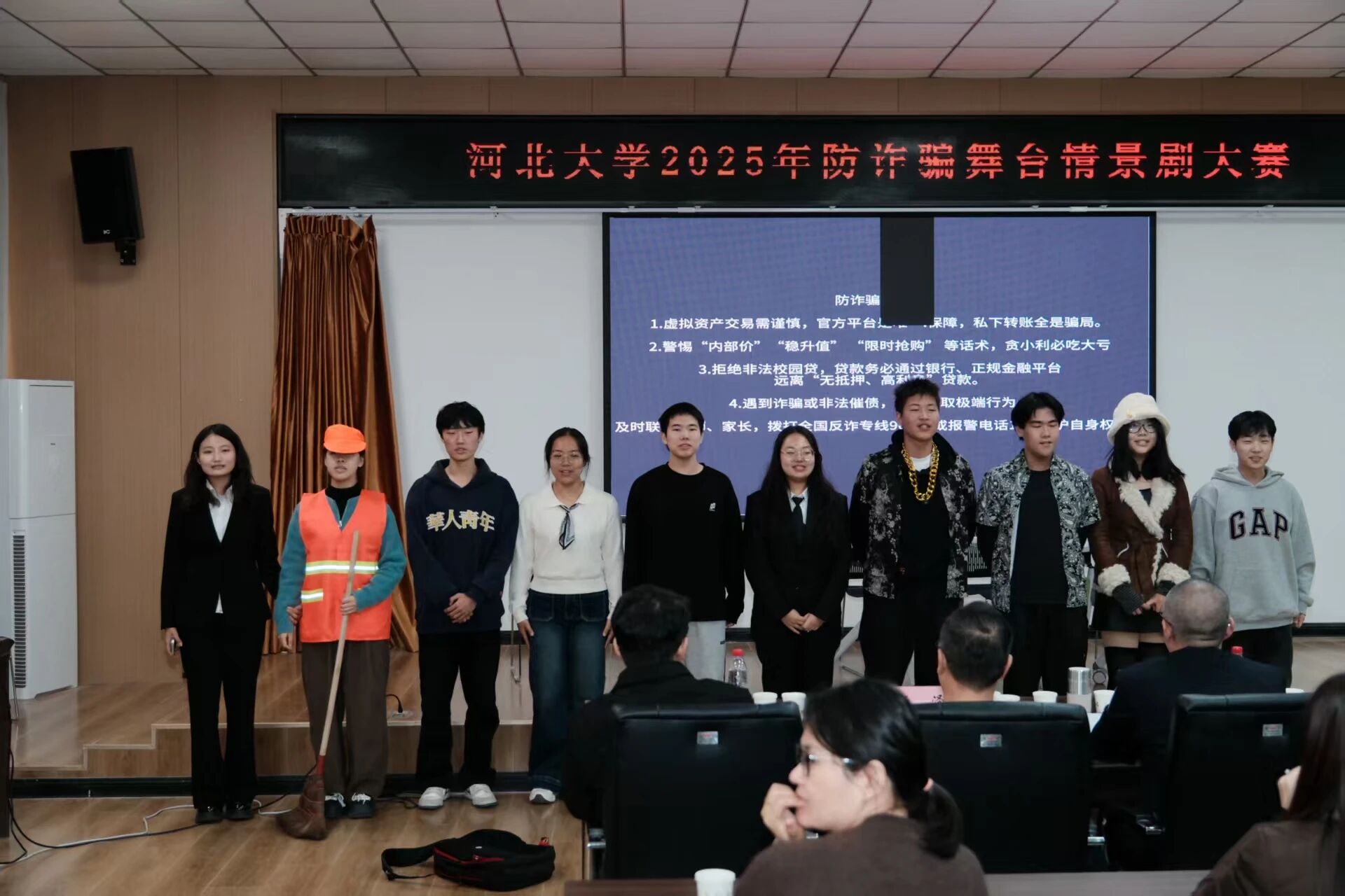 为进一步强化安全防范意识,提升反诈应对能力,厚植校园安全文化,124日下午,河北大学2025年防诈骗舞台情景剧大赛在五四路校区成功举办。哲学与社会学学院代表队凭借其原创作品《罪恶迷途》,以贴近现实的剧情与生动深刻的演绎,荣获大赛二等奖。