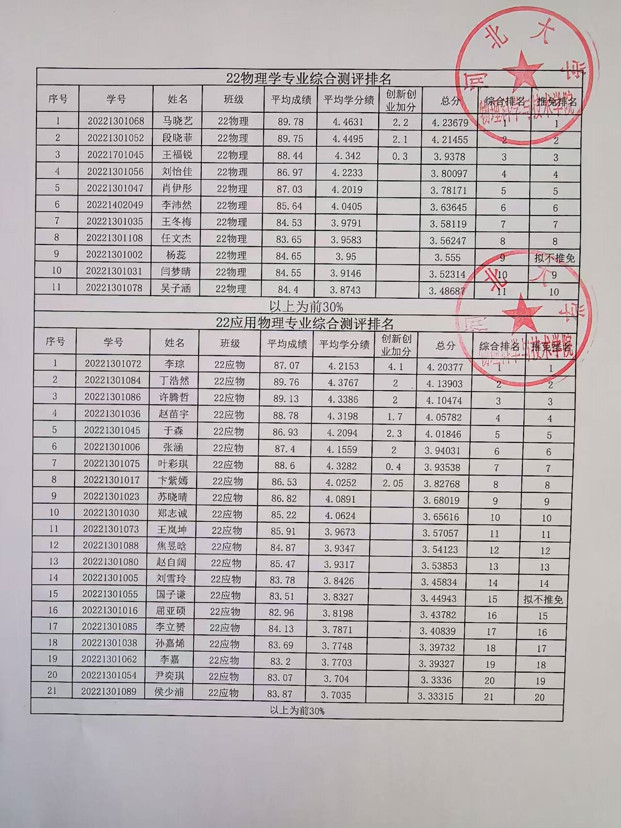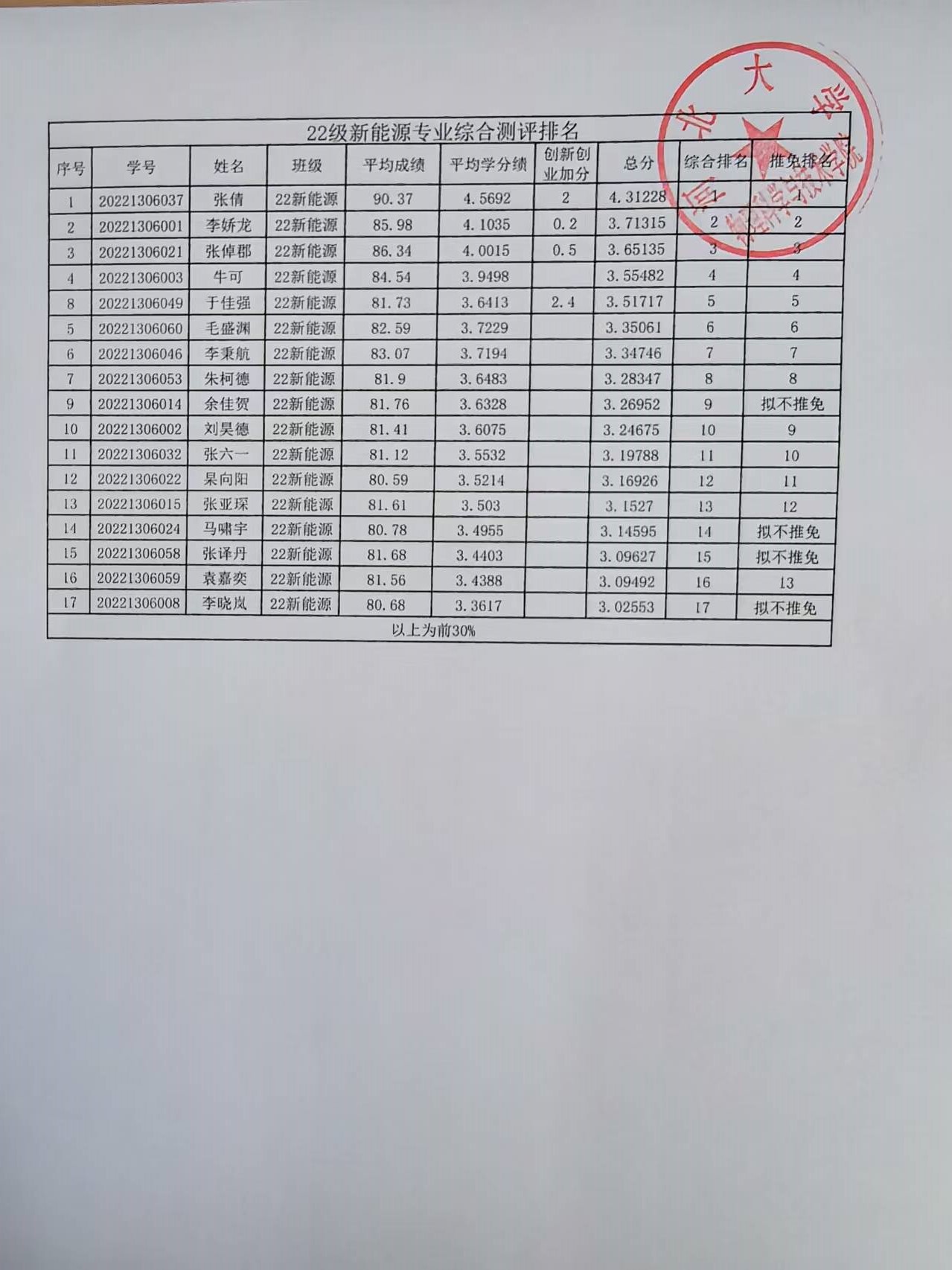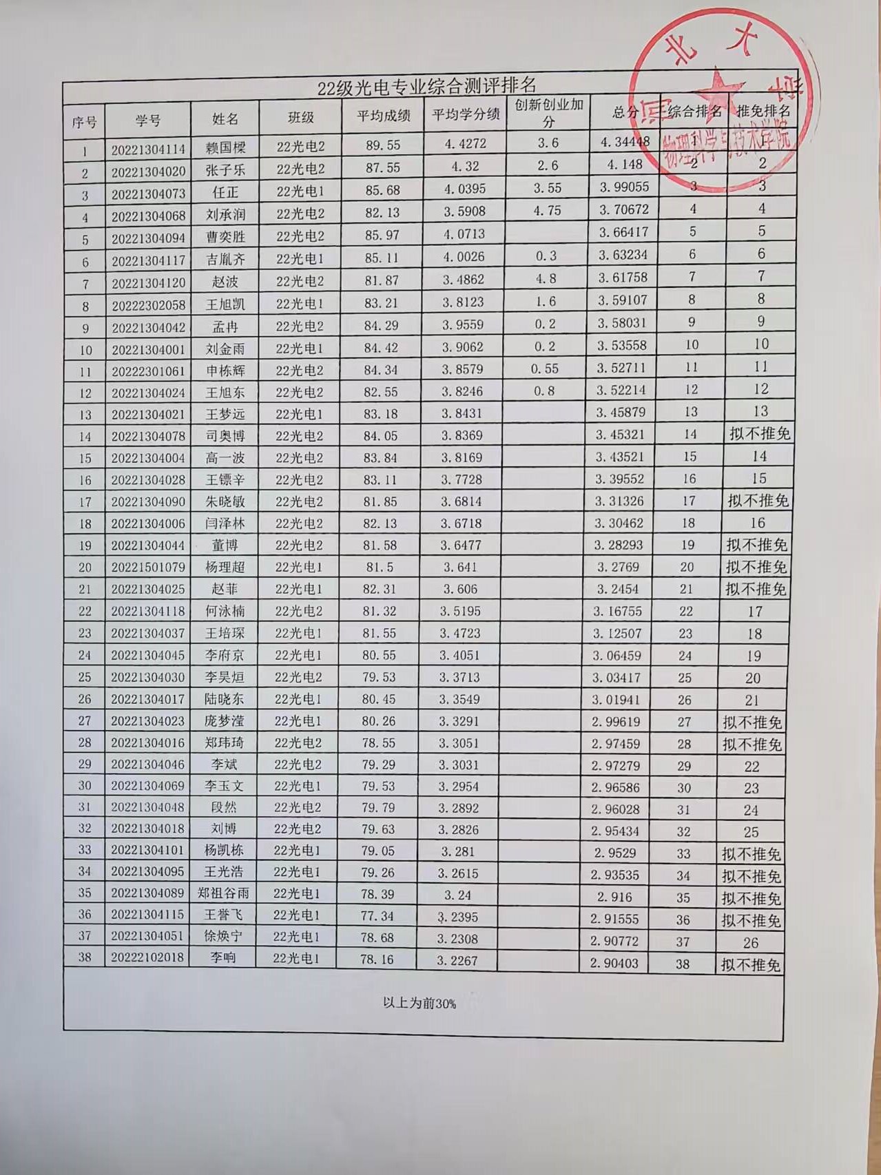 根据《河北大学推荐优秀应届本科毕业生免试攻读研究生工作管理办法》(校教字〔2025〕13号)的相关规定与工作安排,经学生本人申请、学院工作领导小组资格审核与评定,现将我院符合推荐条件应届本科毕业生的综合测评成绩排名及拟推免排名情况公示如下: