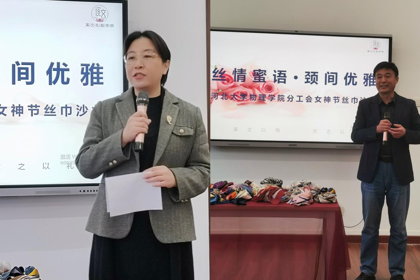 3月13日,我院在物理楼工会小家开展丝巾文化沙龙,庆祝第115个国际妇女节、我国第102个妇女节,学院党委副书记张薇和工会主席李旭出席活动。