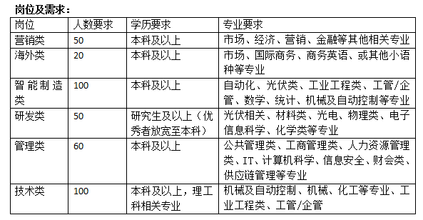 需求专业:理工类均可(电气、光伏、机电、材料、化学、光伏、电子等专业最佳)