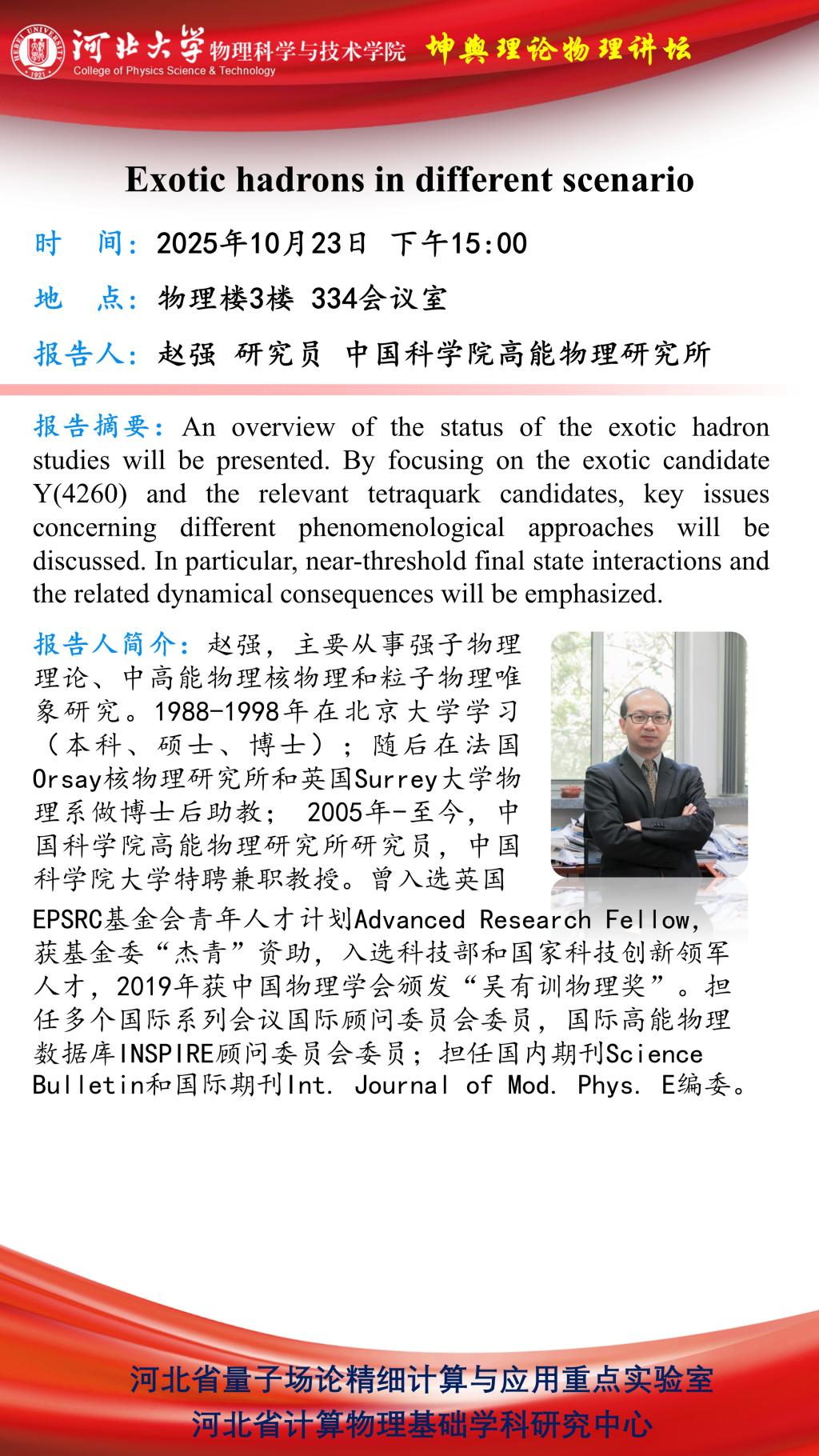 学术预告:Exotic hadrons in different scenario
