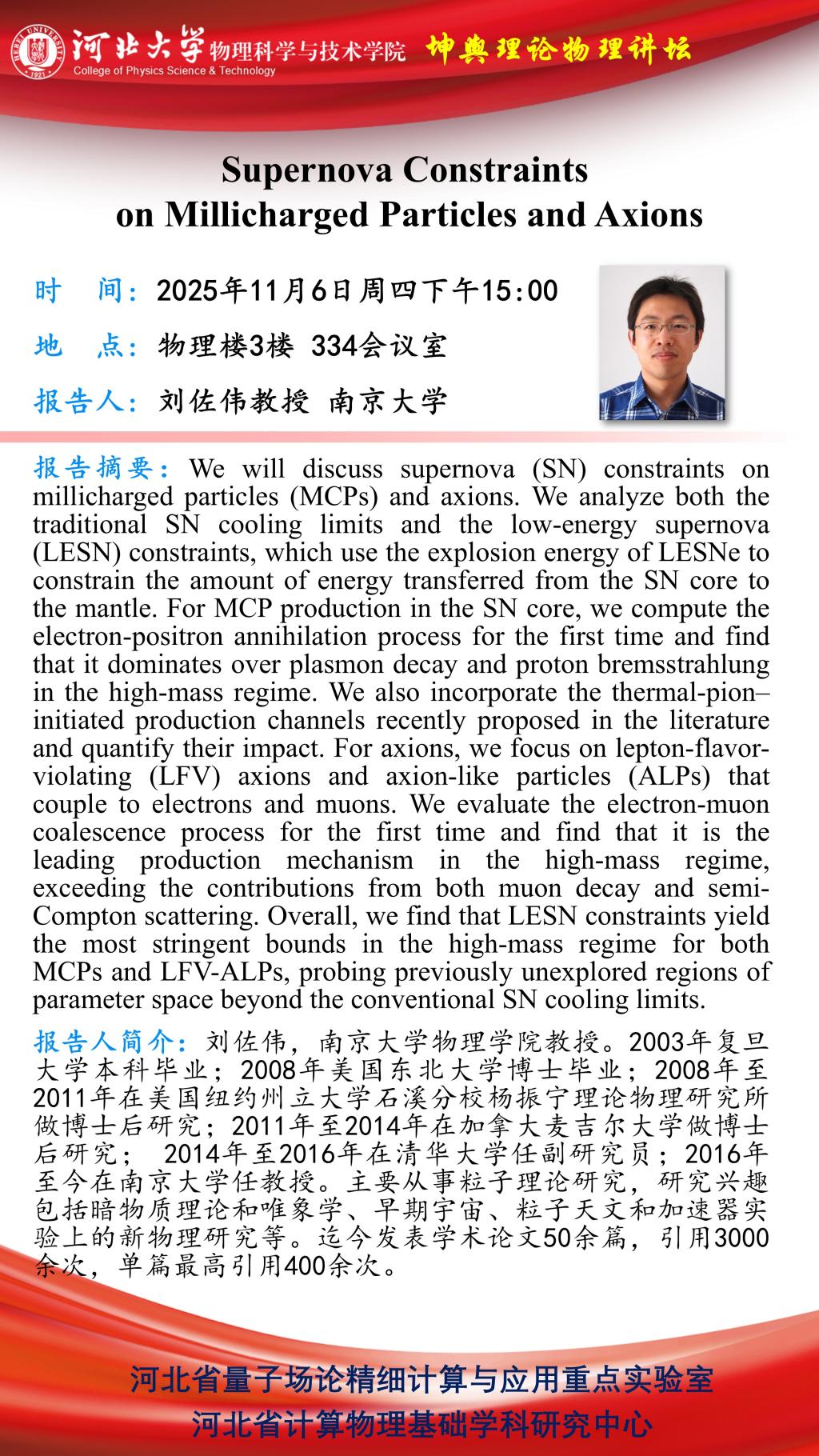 学术预告:Supernova Constraints on Millicharged Particles and Axions