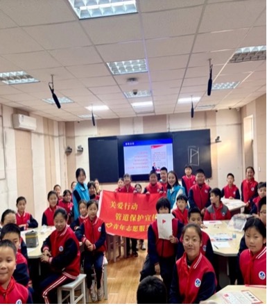 2024年1月14日,红石榴志愿分队与保定市莲池区厚福盈小学,共同启动“少年儿童安全守护计划”宣讲活动。在党的二十大精神的光辉指引下,河北大学研究生红石榴志愿者分队紧跟时代步伐,积极响应团中央青年志愿者行动指导中心的号召。在枫林尽染的金秋,我们正式拉开了2024年关爱行动“少年儿童安全守护计划”管道保护志愿服务项目的序幕,以实际行动为国家的能源安全贡献青春的智慧和力量。