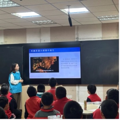 主讲志愿者常晋在课后感悟中谈到:通过讲述每面旗帜诞生的故事,我仿佛带领学生们穿越回了那个风雨飘摇又激情燃烧的年代。学生们被那些为了民族独立、人民解放而英勇斗争的先烈们的事迹所感动,眼中闪烁着对祖国的热爱和对未来的憧憬。通过这些旗帜的故事,学生们不仅增长了知识,更在心灵深处种下了爱国的种子。他们开始更加关注国家的发展,更加珍惜来之不易的和平生活,这正是我所坚信的——教育的力量。
