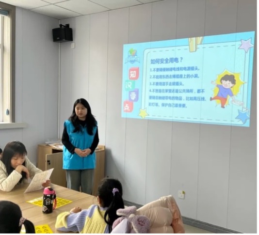 随后,志愿者利用家中的电源插排和电开关作为直观的教学道具,与小朋友们展开了一场别开生面的互动课堂。志愿者引导小朋友们认识“有电危险”标志,并初步学习了防触电的方法。孩子们听得津津有味,眼中闪烁着对知识的渴望与对安全的敬畏。