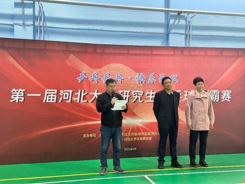 4月22日,河北大学首届研究生乒乓球争霸赛在五四路校区开幕。党委研究生工作部/研究生院和体育教学部主要领导出席了开幕式。