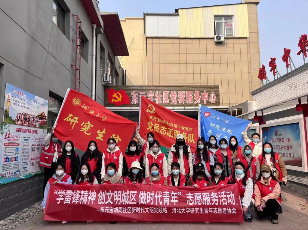 为纪念毛主席为雷锋同志题词60周年,将习近平总书记指示“让学雷锋活动融入日常、化作经常,让雷锋精神在新时代绽放更加璀璨的光芒”志愿服务精神落地落实,河北大学研究生青年志愿者协会与共青团保定市委、东元宝胡同社区新时代文明实践站在东元宝胡同社区辖区范围内集中开展“学雷锋精神,创文明城区,做时代青年”志愿服务活动,号召广大青年志愿者们深入社区,让雷锋精神生生不息、薪火相传,以实际行动书写新时代雷锋故事。
