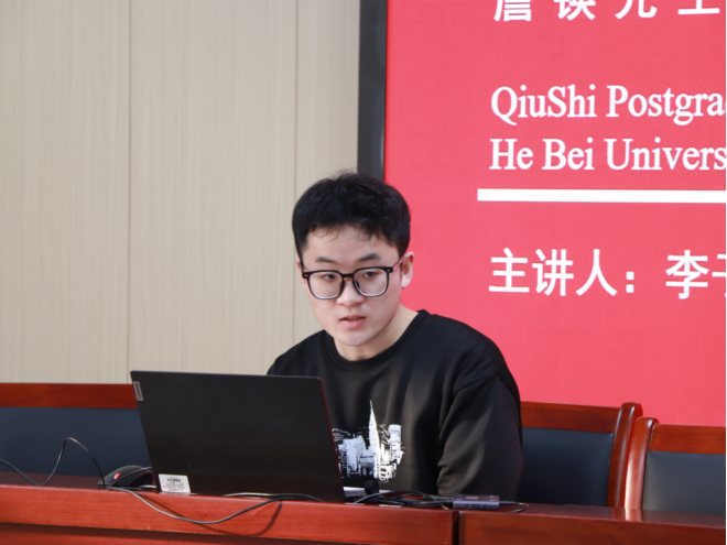活动伊始,“求是”研究生宣讲团讲师李子昊带来了题为《探赜钩深•中西会通•薪火永续:詹锳先生的治学精神与学术遗产》的精彩宣讲。他用生动的语言,向我们介绍了詹锳先生早期求学经历与学术成果,治学方法、学术遗产,爱国精神等内容。宣讲中,李子昊重点拆解了詹锳先生“中西会通、古今交融” 的治学方法:既强调对传统训诂、考据之学的敬畏与坚守,从典籍原文中探寻学术本源;又倡导以现代学术视野审视古典文学,将西方文艺理论与中国传统文论相结合,形成独树一帜的研究范式。