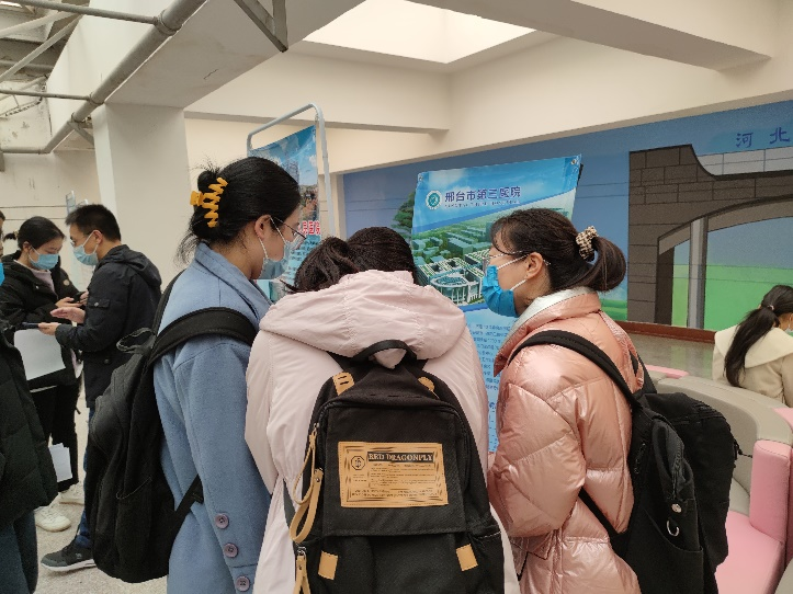 为及时充分做好毕业研究生就业工作,河北大学2023届毕业研究生系列双选会(医学类),2023年3月22日8:30在医学部如期举行,在医学部各学院老师及保卫处工作人员支持下,本次双选会运行平稳并取得佳绩。据数据统计,共计16家优质单位到场参会,包括中国人民解放军第五医学中心、涿州市医院、邢台市第三医院等京津冀地区知名医院及企业,岗位需求数500余个,参会同学热情饱满浏览招聘信息,根据专业特长与意向单位进行面对面交流并提交简历,已面试人数及招聘单位反馈意见正在整理中。