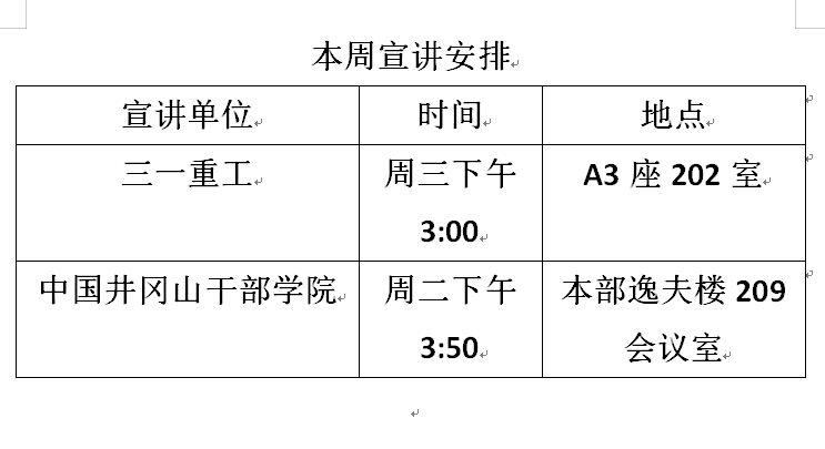 本周宣讲会安排