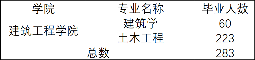2024年河北大学建筑工程学院应届本科毕业生共283人,包括土木工程专业223人,建筑学专业60人。