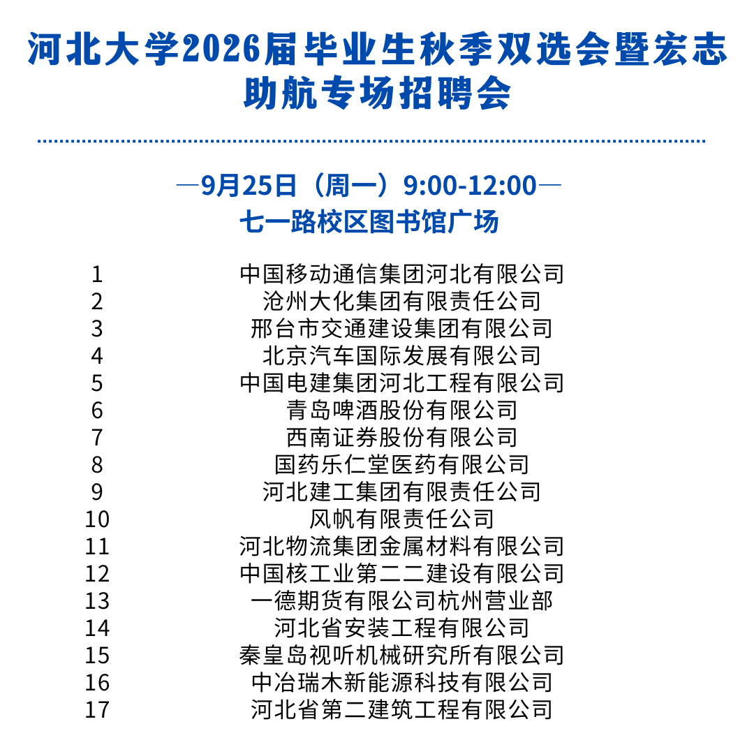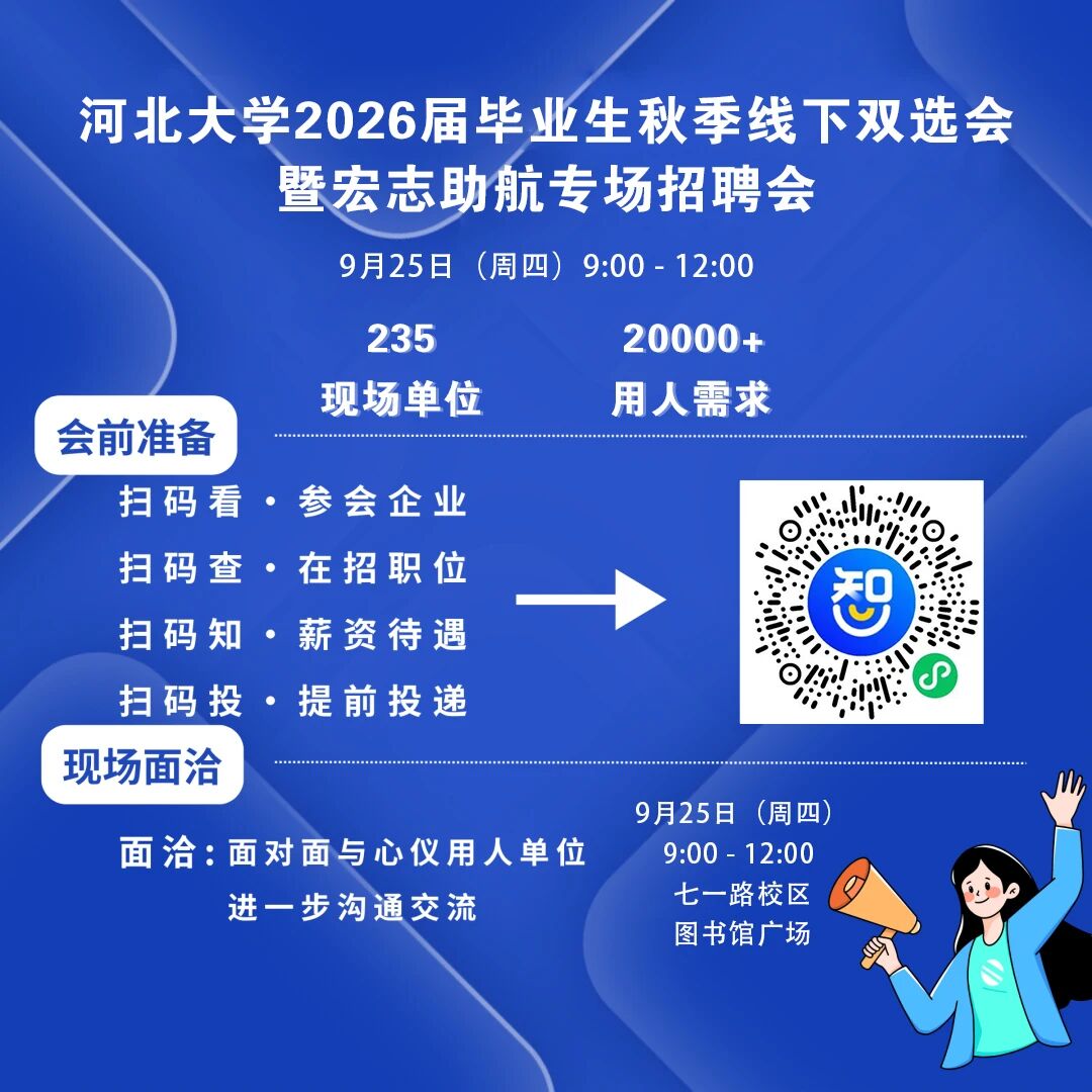河北大学2026届毕业生秋季双选会暨宏志助航专场招聘会