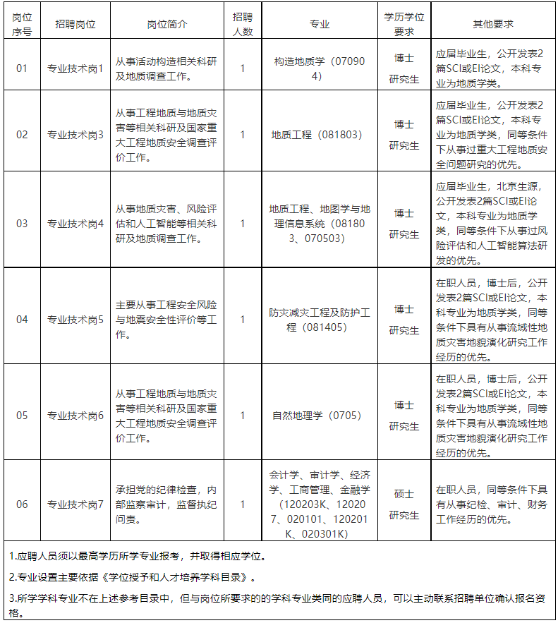 中国地质科学院地质力学研究所成立于1956年,是国家公益性和综合性地学研究机构,为自然资源部中国地质调查局直属事业单位。根据工作需要,现面向社会公开招聘工作人员6人,其中应届毕业生3人,在职人员3人。有关事宜公告如下。