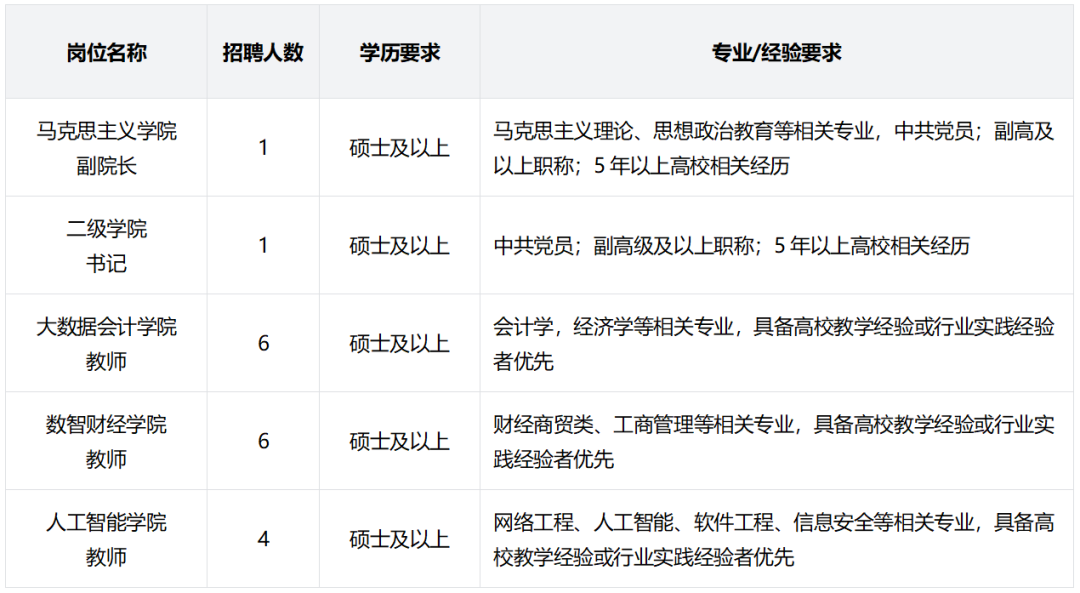 招聘岗位及要求