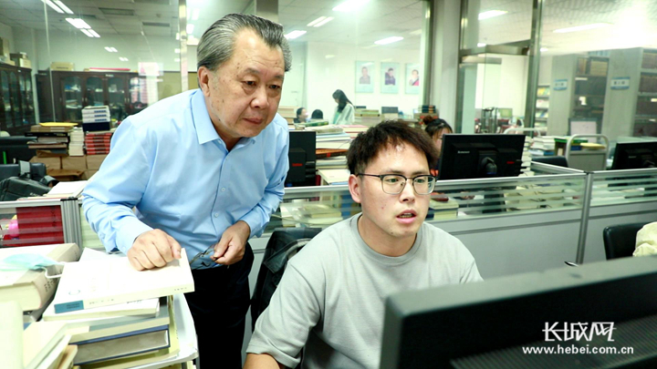 杨宝忠教授正在指导博士生王亚彬。 长城网记者 武新杰 摄